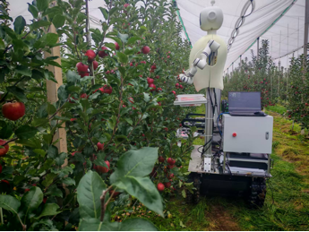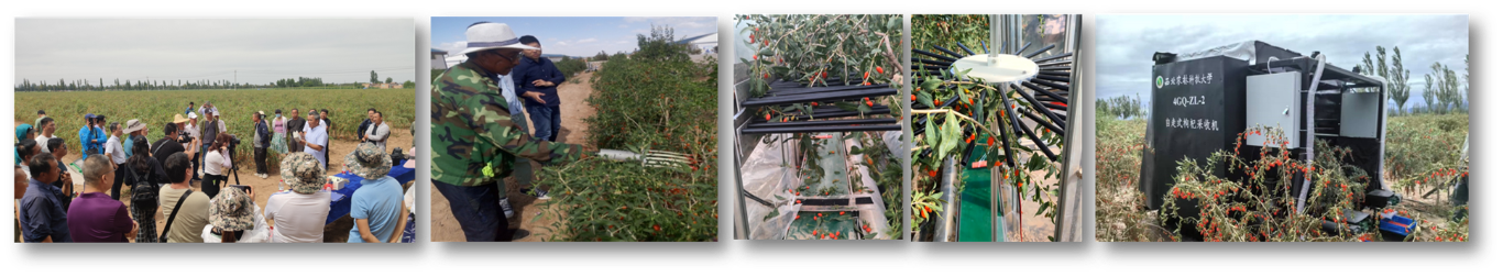 特色产业,精准赋能。聚焦区域特色产业高质量发展痛点,机电学院开展技术攻关,形成 “一业一策、精准赋能” 的产业服务模式。在苹果产业领域,依托黄陵苹果全程机械化试验站,开展苹果全程机械化技术与装备的试验示范,首台“双胞胎”苹果采摘机器人研制成功,为延安全国苹果高水平发展先行区建设提供装备支撑;针对猕猴桃、枸杞、酿酒葡萄、杜仲等特色品类,先后研发了智能采摘平台、精准授粉机、智慧葡萄园管理系统、水果打标机、无人机信息获取平台、元胡收获机等一批新技术装备,其中枸杞采收机效率达人工 3-5 倍,陆续在宁夏、青海等地试验示范;水果品质检测装备、猕猴桃智能作业平台、特色果品杀菌干燥技术等陆续进入熟化应用阶段,从装备研发到技术推广多维度推动区域特色产业提质升级。